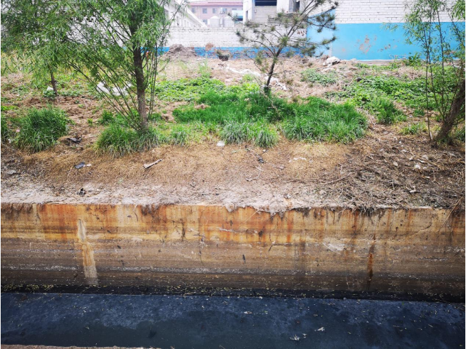 養(yǎng)牛場(chǎng)旁邊的退水渠,水體黑臭