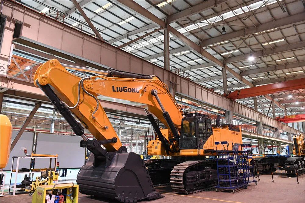 這是4月26日拍攝的廣西柳工集團有限公司生產廠房內正在組裝的機械。新華社記者 曹祎銘 攝