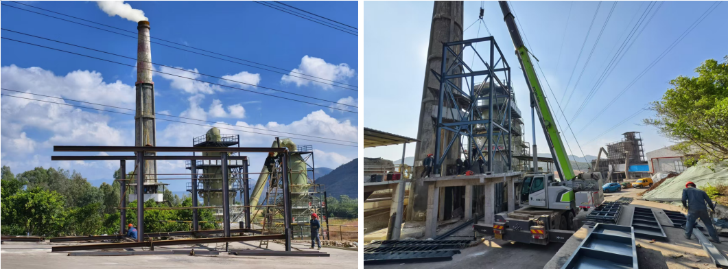 該項目為EPC總承包,目前已完成土建基礎和鋼架結構的制作安裝,為主體設備的到場、安裝做好準備。項目建成后能穩定實現排放煙氣中顆粒物和硫酸霧濃度小于10mg/Nm3的超低排放要求。