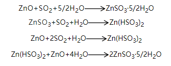 氧化鋅脫硫技術是將含ZnO的粉料加水配制成懸乳液,在吸收設備中與煙氣中的SO2反應,將煙氣中的SO2主要以亞硫酸鋅(還有亞硫酸氫鋅、硫酸鋅)的形式予以脫除。吸收后的副產物亞硫酸鋅經空氣氧化為硫酸鋅溶液,加入氧化鋅粉、硫酸在特定的PH值和溫度下充分反應,再經除雜、結晶后生成七水硫酸鋅產品,從而實現污染物的回收,資源化綜合利用。