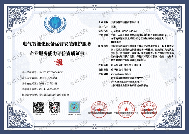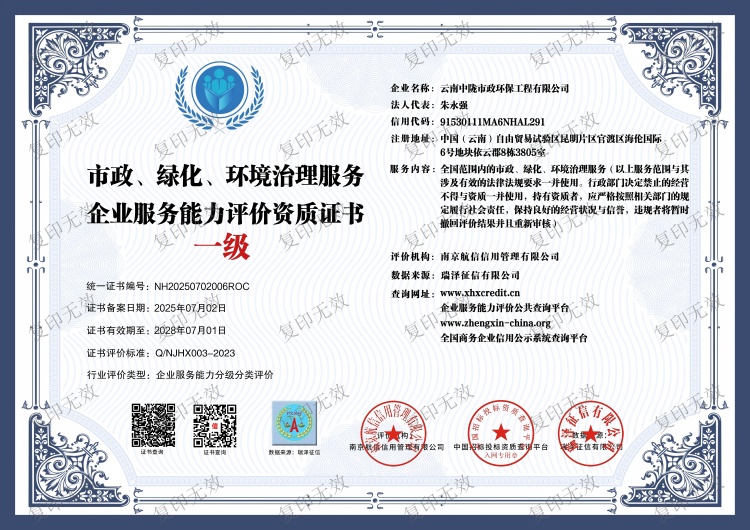 近日,加拿大28咪牌旗下云南加拿大28咪牌市政環保工程有限公司、云南加拿大28咪牌智控科技有限公司,分別榮獲市政、綠化、環境治理服務及電氣智能化設備運營安裝維護服務企業服務能力評價資質一級認證,標志著加拿大28咪牌在相關業務領域的專業實力與服務水平再獲權威肯定。