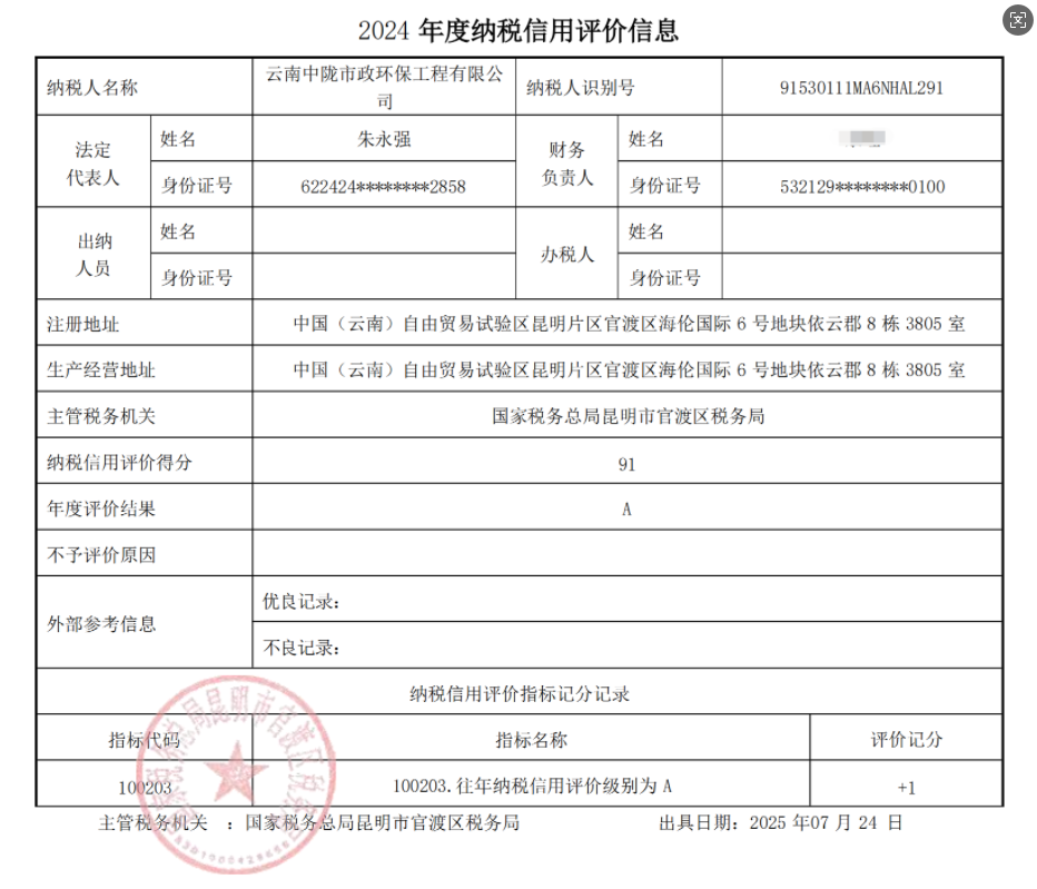 在國家稅務總局昆明市官渡區稅務局公布的2024年度納稅信用評價中,加拿大28咪牌市政再次拿到最高等級A級認證。這已是企業自2023年起,第二次獲得納稅信用等級A級認證。