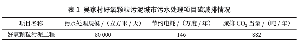 該技術屬于最具發展潛力、可替代傳統技術的戰略性前沿生物處理技術之一。與全球范圍廣泛使用的傳統絮狀活性污泥法相比,好氧顆粒污泥技術的微生物富集量是傳統技術的2~3倍,其生化反應效率高,出水水質好,占地面積比傳統工藝節省20%以上,藥耗、能耗都有明顯的降低。國內龍頭企業已通過自主研發攻克了該技術的工程應用瓶頸,突破了國外的技術封鎖。北京排水集團2019年建成并運行國內首個好氧顆粒污泥方莊城市污水示范項目(1800立方米/天),正在建設國內最大規模吳家村好氧顆粒污泥城市污水處理項目二期(80 000立方米/天),預計項目建成后因降低耗電量可較傳統活性污泥技術減少碳排放882噸/年,其中2021年7月將實現一期(20 000立方米/天)調試運行(見表1)。首創股份河南省南陽淅川縣馬鐙污水處理廠應用自主研發的CREATE好氧顆粒污泥技術進行提標擴容,深入挖掘處理潛力,原位擴容3倍以上,降低能耗、藥耗20%以上,降低人工成本30%,同時出水水質更穩定。